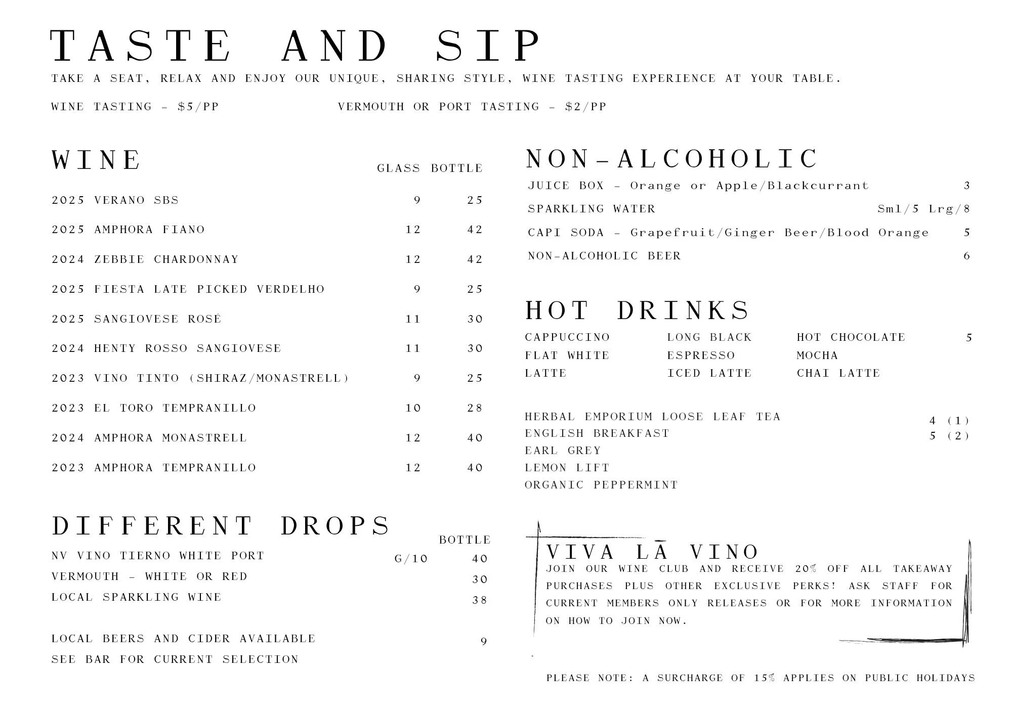15% SURCHARGE APPLIES ON PUBLIC HOLIDAYS