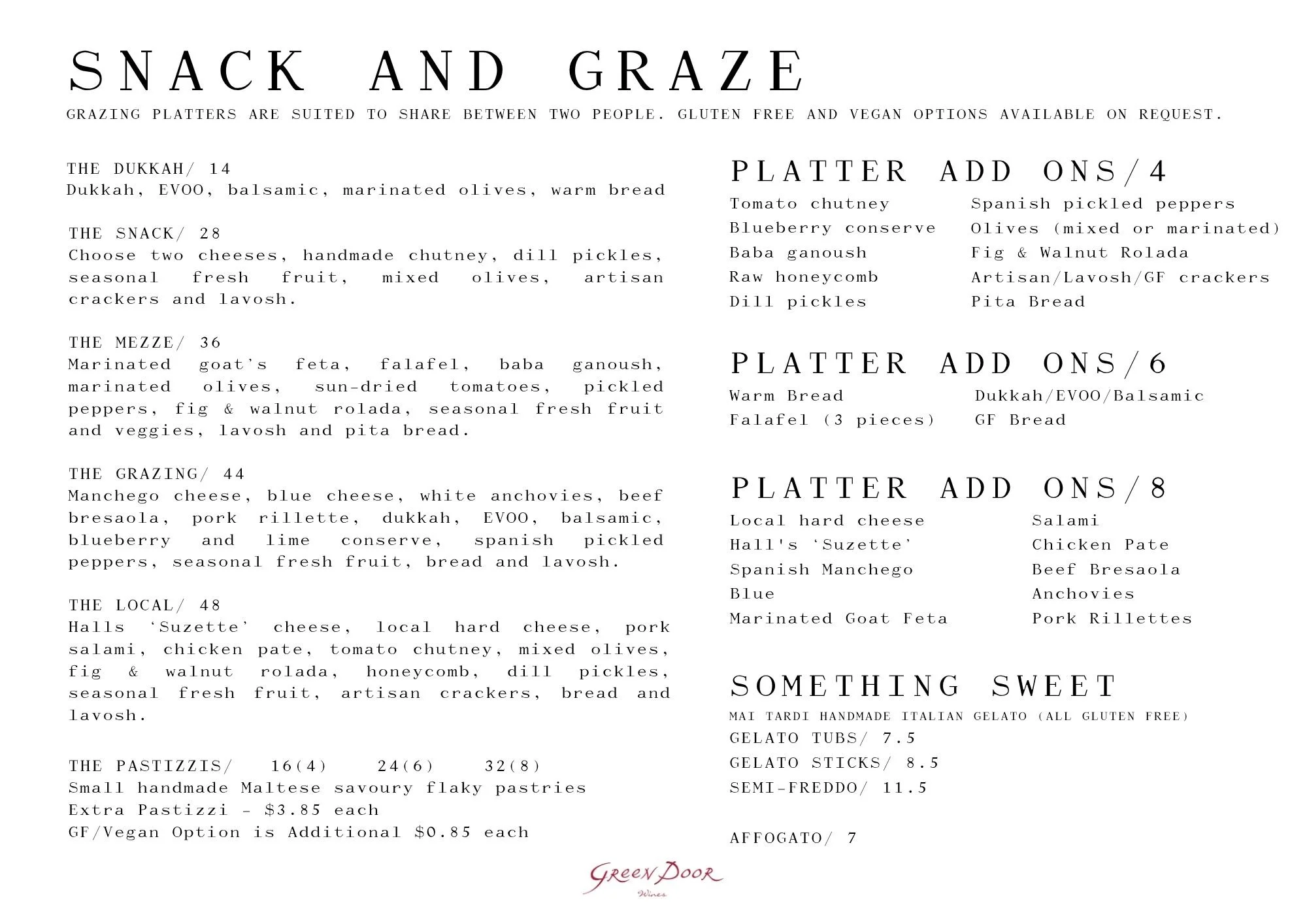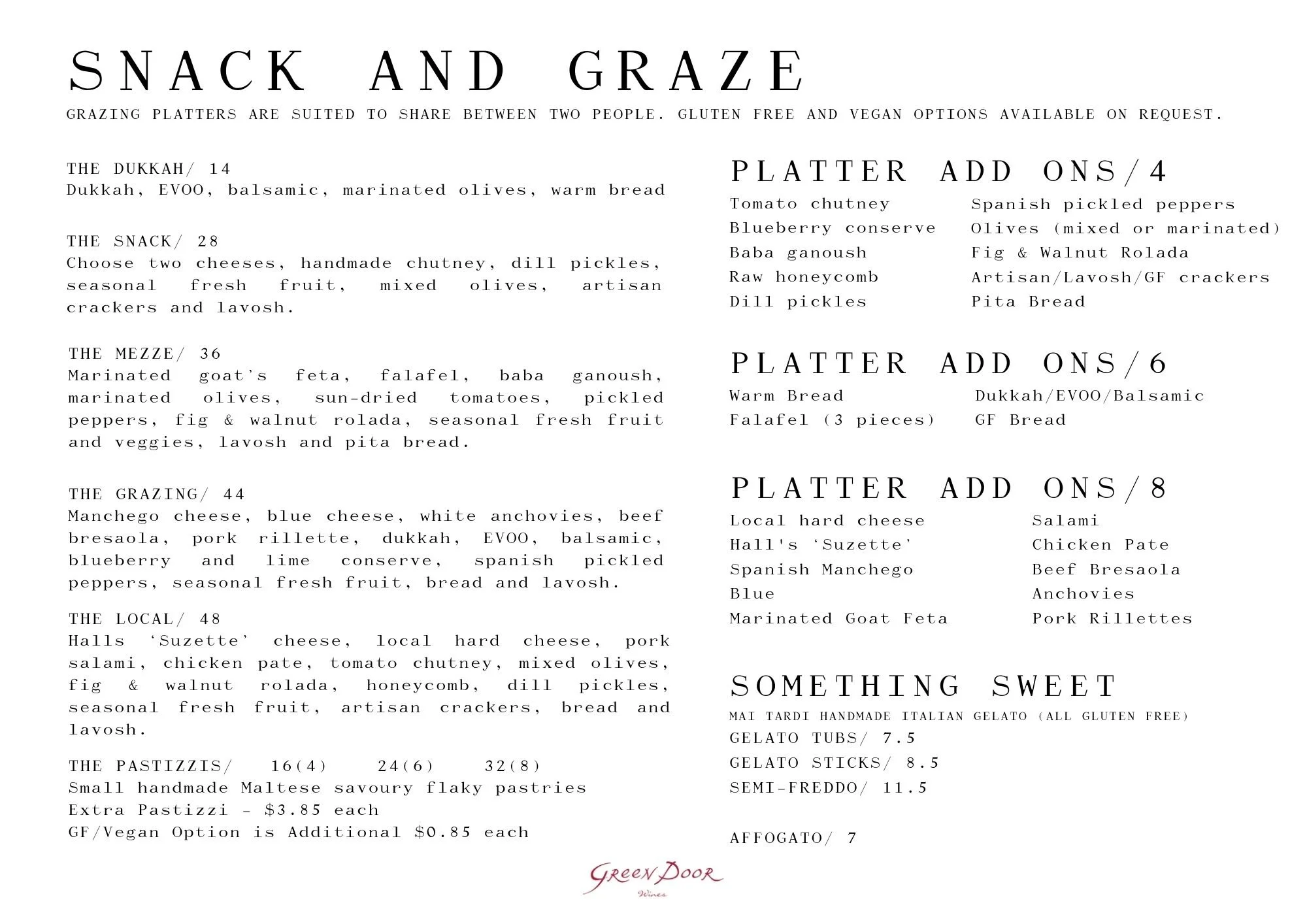 Our food menu located below, evolves seasonally to represent the best of the region and is subject to price change.